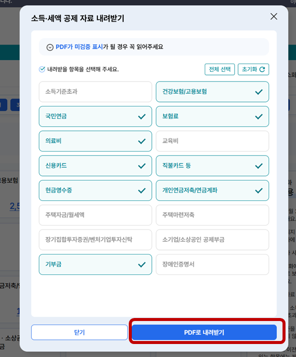 중요!!! 연말정산 간소화서비스 확인할 때는 항목 하나씩을 눌러서 보는게 좋습니다.