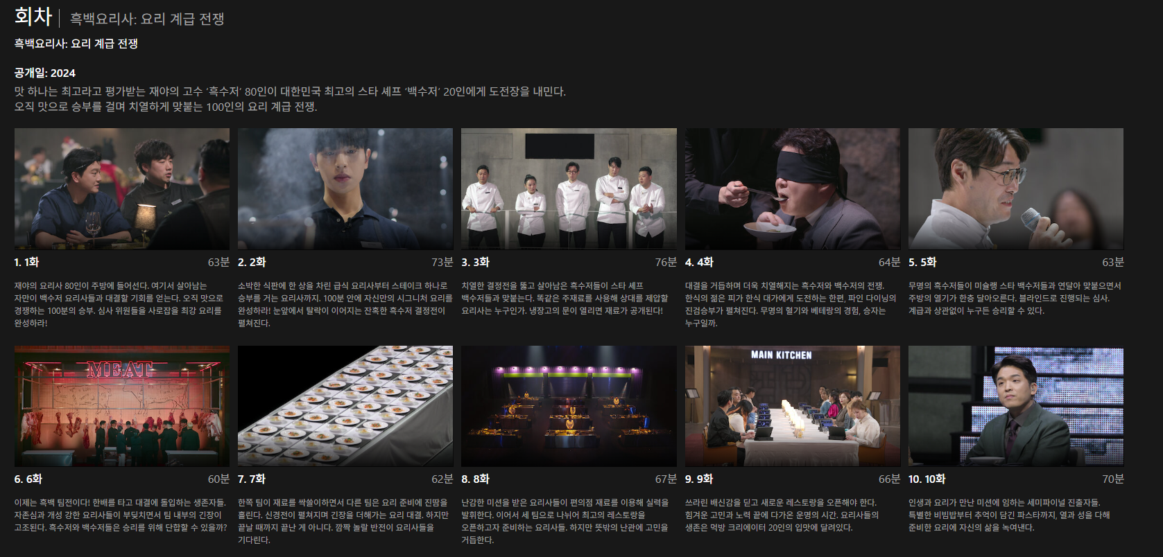 현재 흑백요리사는 넷플렉스를 통해 10화까지 방영이 되어 있는 상황입니다.