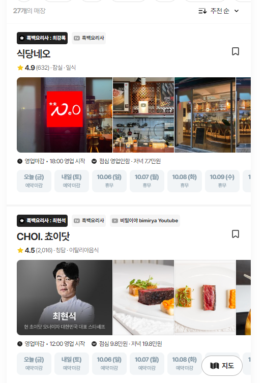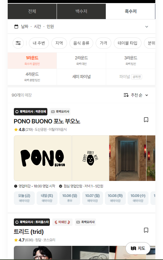 네이버 지도와 함께 모든 흑백요리사분들의 식당을 확인할 수 있습니다.