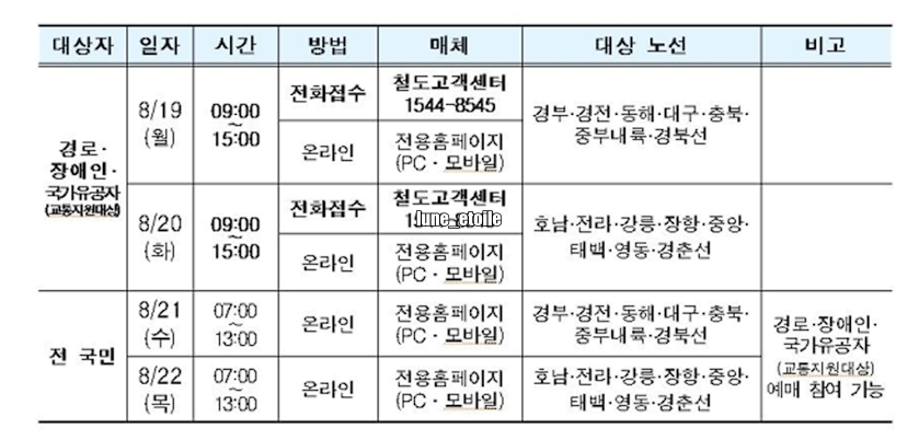 ✅ KTX 예매일정 : 2024년 8월 19일(화) ~22일(목), 4일간