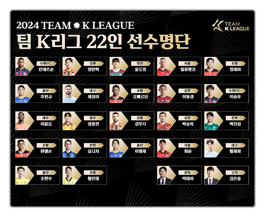 FW : 안데르손(수원FC), 양민혁(강원), 윤도영(대전), 일류첸코(서울), 정재희(포항), 주민규(울산)