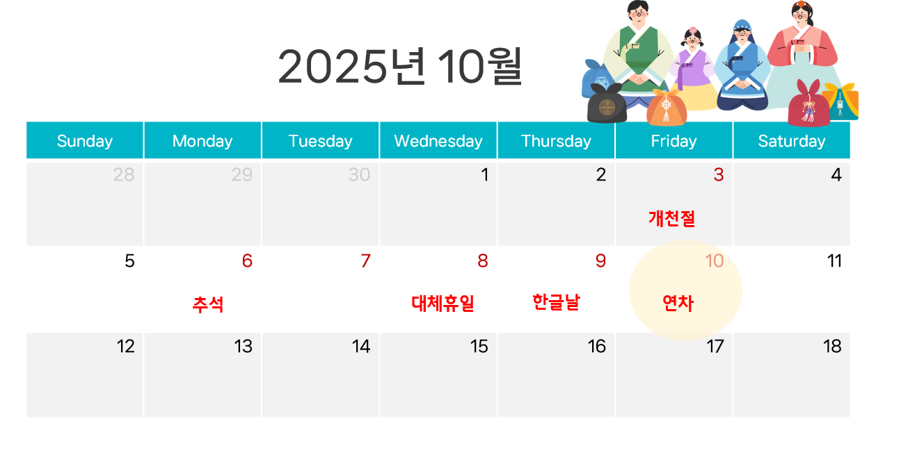 2025년 10월 _ 공휴일 6일