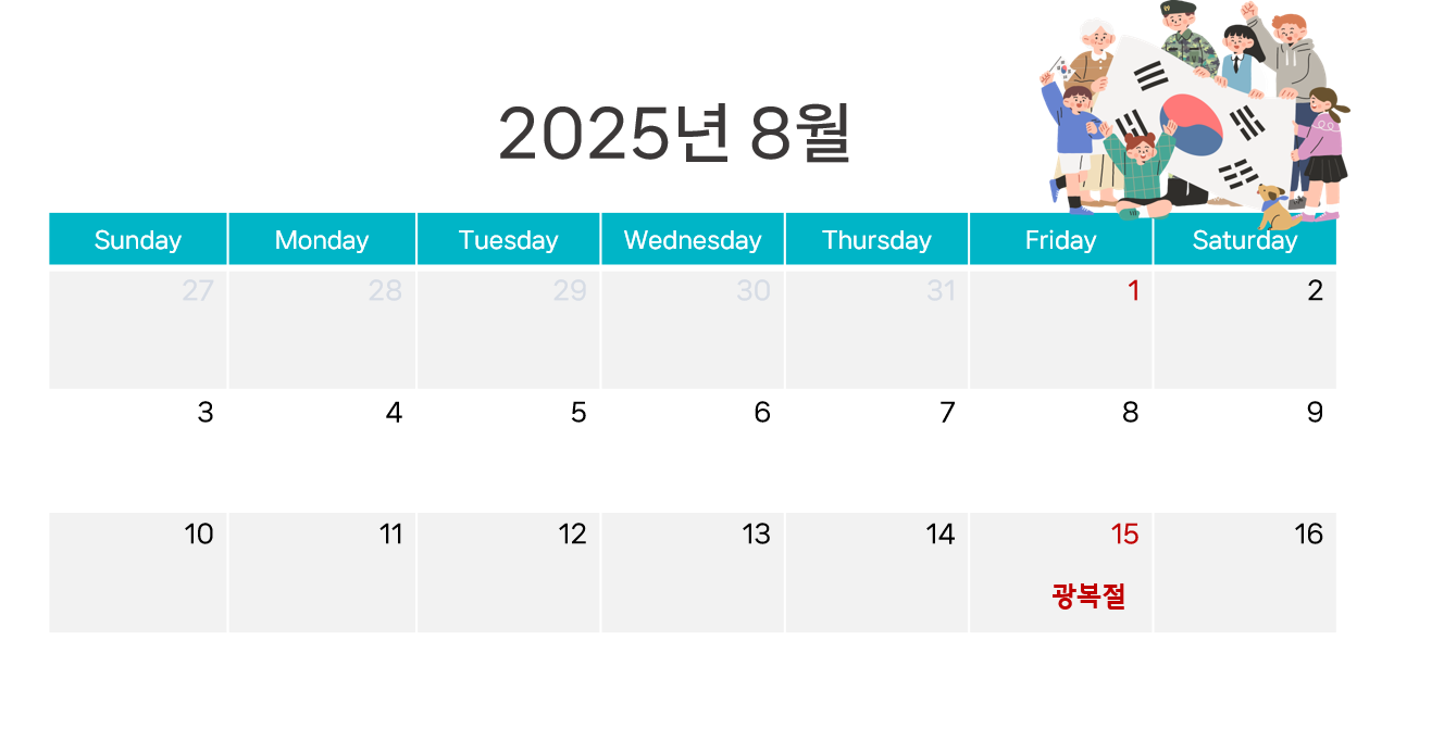 2025년 8월 _ 공휴일 1일